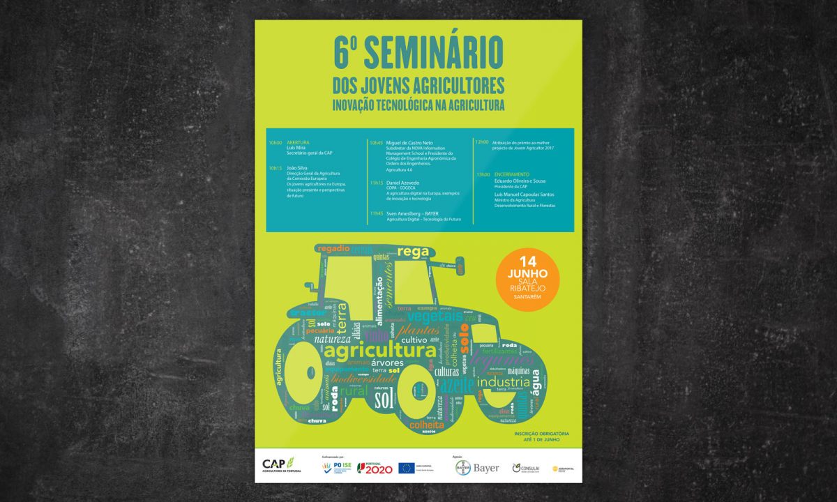 Cartaz para iniciativa que promove jovens agricultores, e vai distinguir os melhores projetos de 2017. A semelhança de anos anteriores o vencedor representará Portugal no concurso Europeu em Bruxelas.